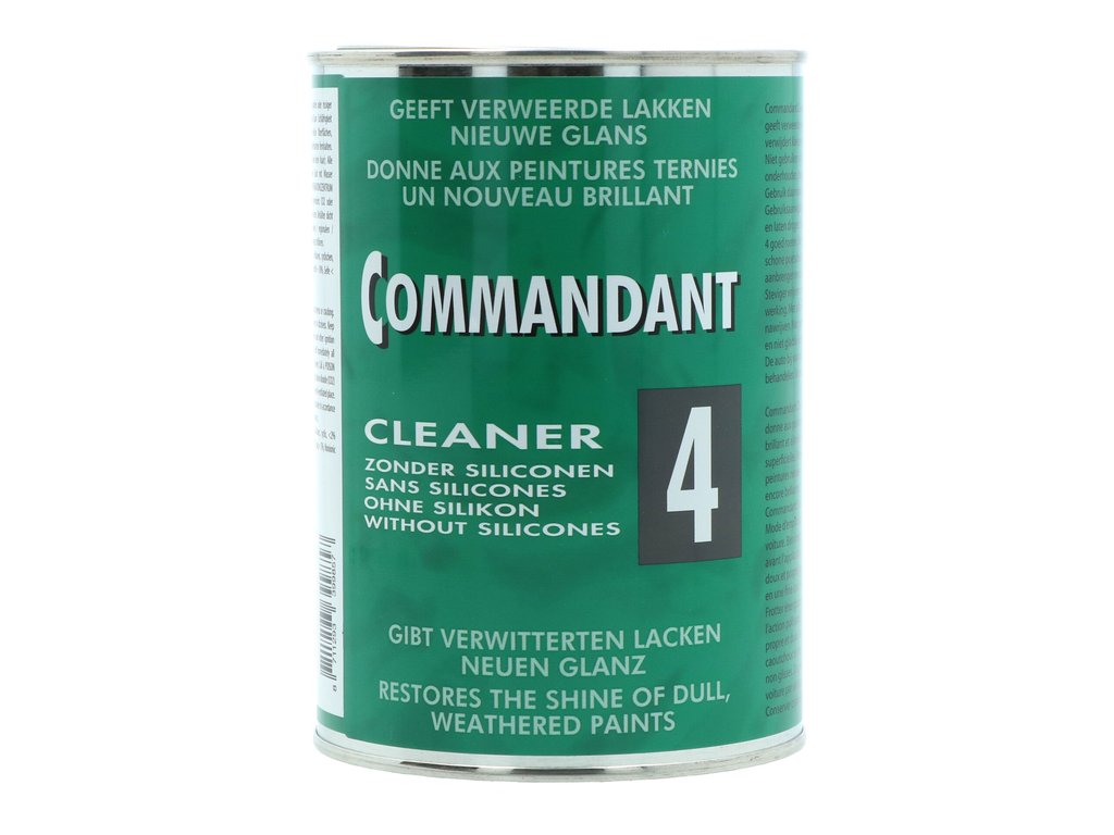 Commandant Cleaner 4, in het bekende groene blik, is de oplossing om uw autolak grondig te reinigen. Commandant 4 is uitermate geschikt om verweerde autolak en doffe aanslag van de lak te verwijderen, en een nieuwe glans te geven. De efficiënte cleaner, zonder siliconen, verwijdert ook kleine oppervlakkige krasjes van licht beschadigde autolak. Commandant 4 is niet geschikt voor nieuwe of goed onderhouden nog glanzende lakken. Hiervoor is Commandant 5 of 7 geschikt.