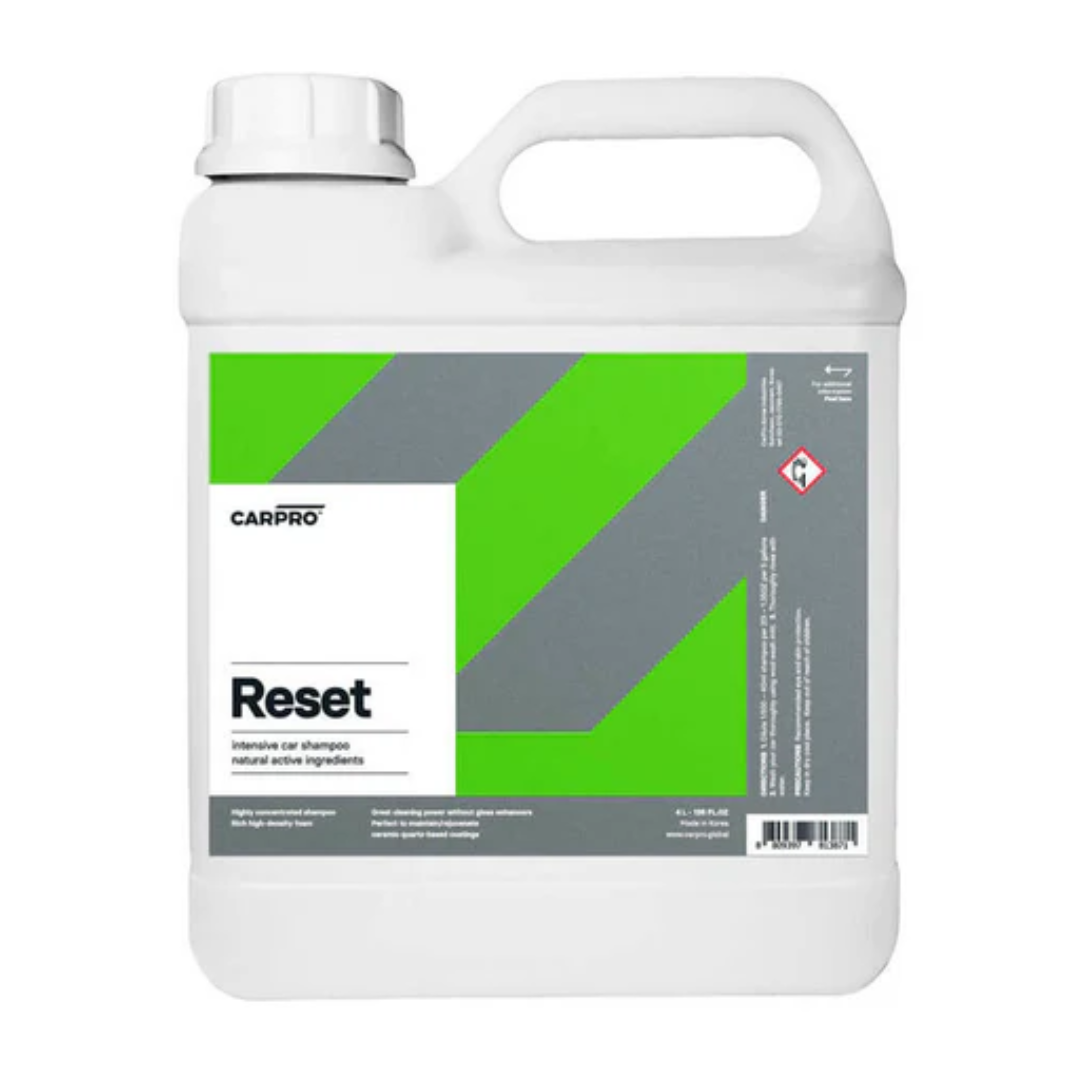 CarPro Reset is geformuleerd om de perfecte partner te zijn voor nanogebaseerde sealants en coatings. Reset breekt op krachtige wijze wegvervuiling af terwijl deze mild is het voor het te behandelen oppervlak. Na het wassen laat Reset zich gemakkelijk van de lak afspoelen waardoor er geen zeep residu of siliconen op het oppervlak achterblijven waardoor de beading, sheeting en vuilafstotendheid van de coating weer wordt hersteld. Doordat de shampoo zeer goed schuimt, ervoor zorgt dat de washmitt gemakkelijk over de lak glijdt en een prima mengverhouding heeft is dit een uitstekende en economische shampoo.