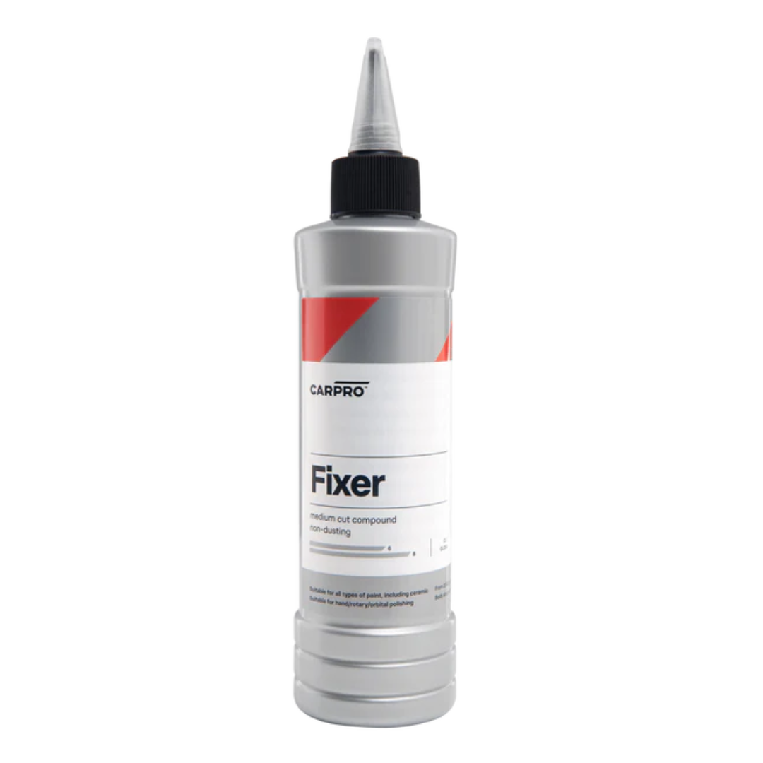 CarPro Fixer Polish is a highly versatile compound and polish designed for all paint types. Fixer removes 1500 grit, as well as scratches, marring, haze, and swirls from existing, fresh, soft, medium, hard, and ceramic paints. Fixer removes 80 to 95% of paint defects while also delivering a beautiful finish. This new-generation polish is based on nanotechnology and is the most versatile polish currently available, based on deminishing abrasive grains.