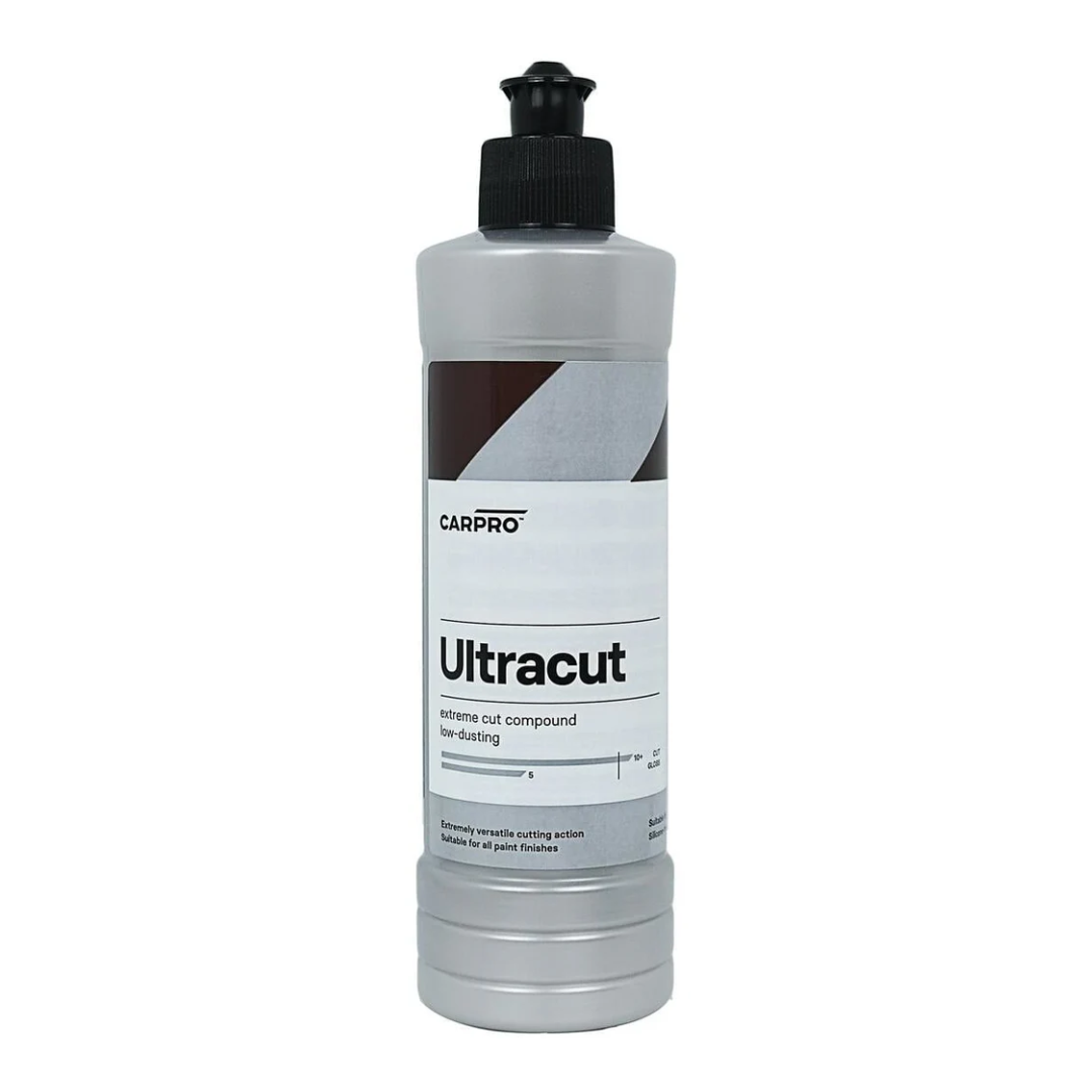 Ultracut Extreme Cut Compound is one of the most versatile cutting compounds you'll ever use and suitable for all paint defects. The polishing power of this cutting compound can be adjusted by varying the pads and arm speeds. Ultracut contains a blend of fully biodegradable (diminishing) polishing grains that can remove heavy defects while leaving minimal haze on the paint. CarPro Ultracut can be combined with various cutting pads such as wool, flash pads, or microfiber pads for extremely effective and efficient removal of paint defects.