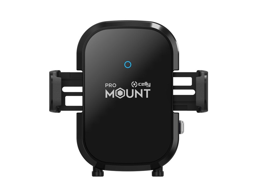 Mountcharge15 is the universal smartphone car holder with a removable base for your fan or dashboard. With wireless charging, you can charge devices with a maximum power of 15 watts. An auto-release button automatically opens the arms for easy positioning of your smartphone. 360° swivel mount. Compatible with all smartphones up to 6.9 inches.