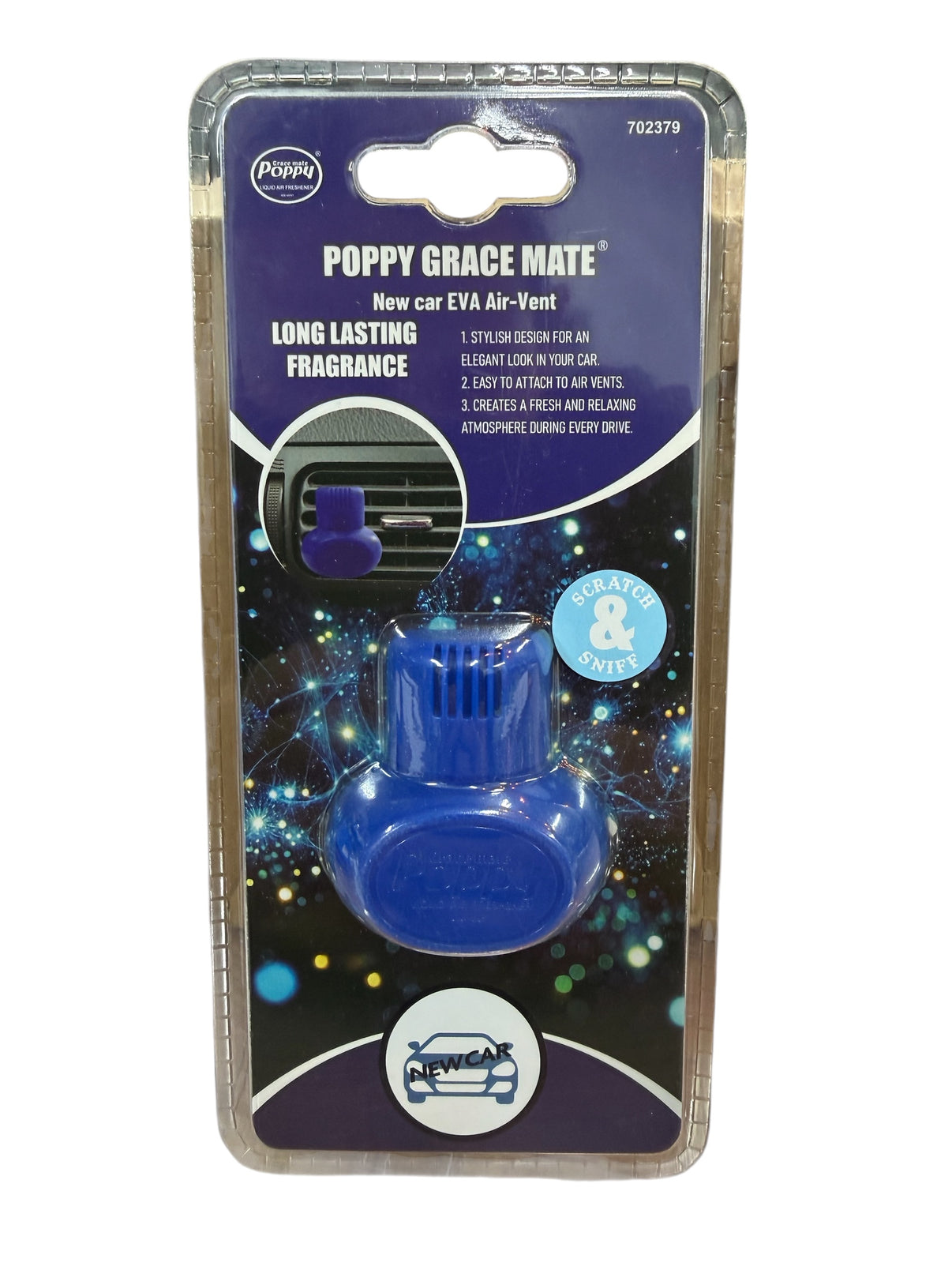 Ervaar een frisse en rustgevende rijomgeving met de Poppy Grace Mate EVA luchtverfrisser in de verkwikkende New Car geur. Deze stijlvolle luchtverfrisser is speciaal ontworpen voor eenvoudige bevestiging in het ventilatierooster van je voertuig. Dankzij de praktische clip is installatie in enkele seconden geregeld. Zodra de ventilatie lucht blaast, verspreidt zich direct een aangename geur door het interieur.