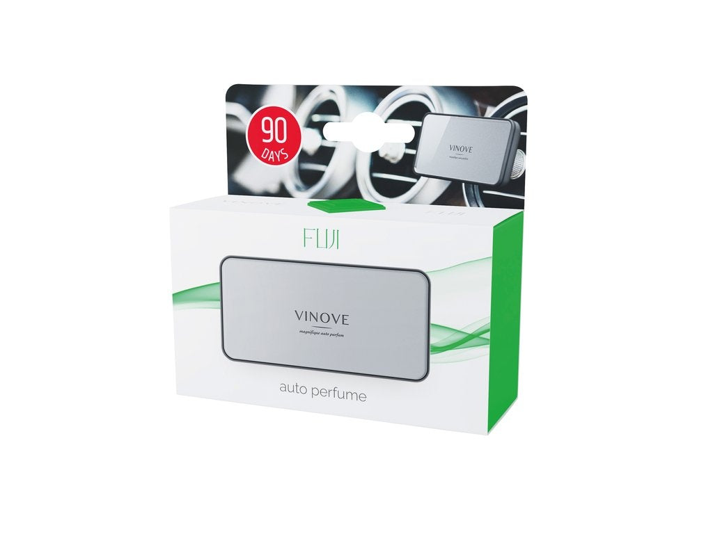 Vinove Original Fuji air freshener offers a calming scent, combining herbs and grapefruit with strong spice and wood tones. The clip allows you to attach it horizontally or vertically to your ventilation grille and lasts up to 90 days.
