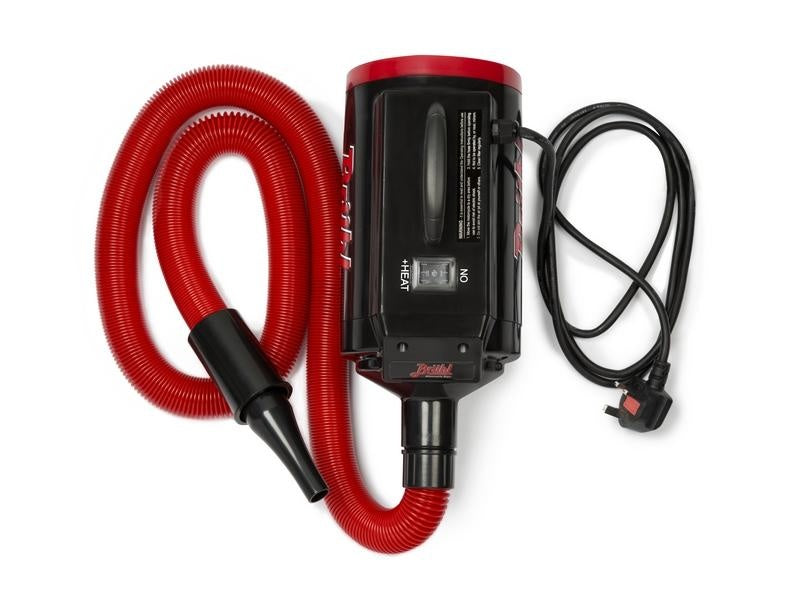 De turbine van de voertuigdroger maakt 1.400W. Bovendien kan 500 extra watt worden ingeschakeld door op een knop "+ HEAT" te drukken. Het effect van de warmteproductie is een warmere luchtstroom. De droogtijd is korter en een motorfiets is binnen 8 minuten volledig bevrijd van waterresten.