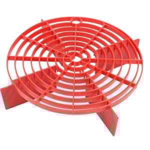 - Plaats de Scratch Shield ondersteboven in het midden van de emmer met de pinnetjes voor de voetplaatjes naar boven. Zorg ervoor dat de scratchshield altijd in het midden ligt.