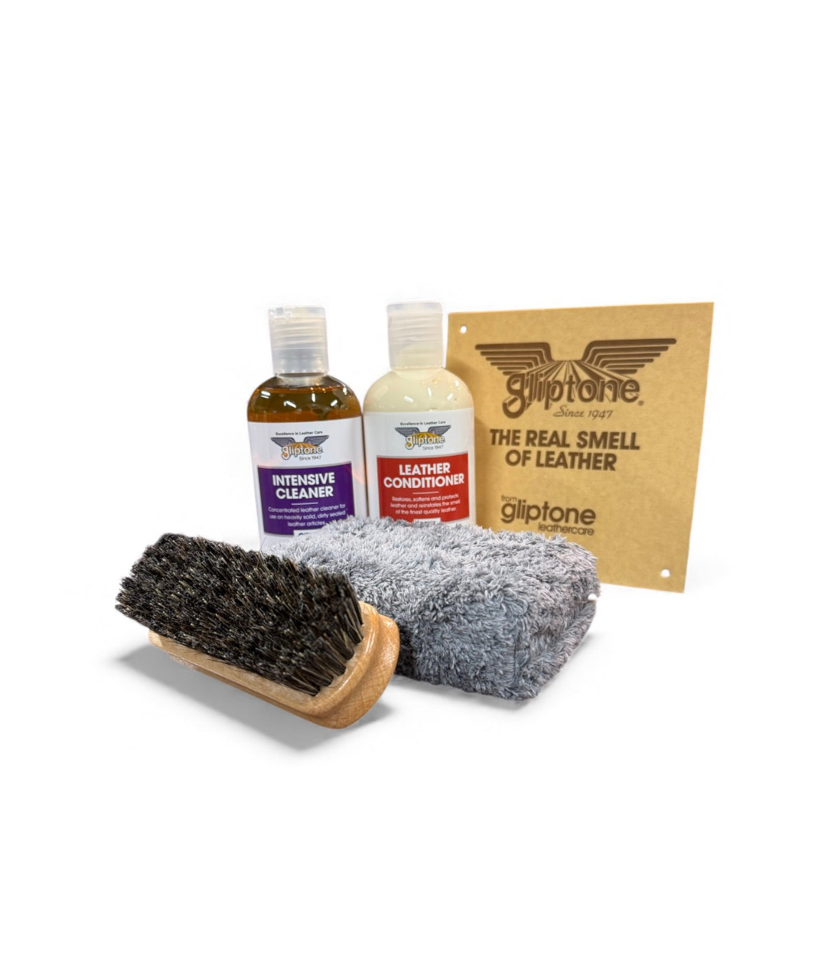 Voor gebruik kan het leder het beste eerst gereinigd worden met Gliptone Liquid Leather Cleaner.