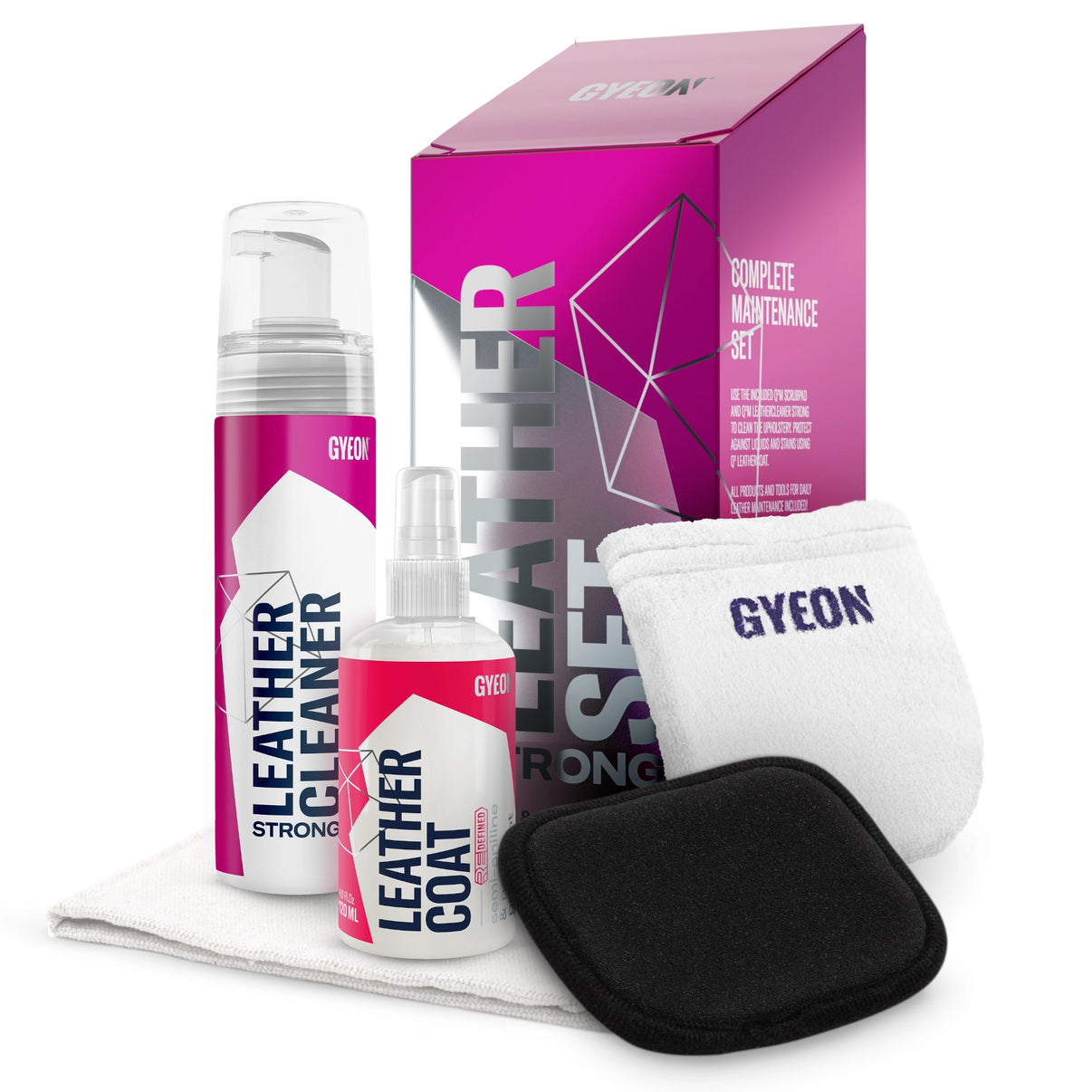 Gyeon Q2M Leather Set STRONG – een complete oplossing voor leerverzorging. Deze versie bevat Q2M Leather Cleaner STRONG – een krachtiger reinigingsproduct, perfect voor sterk vervuilde en eerder gereinigde lederen bekleding.