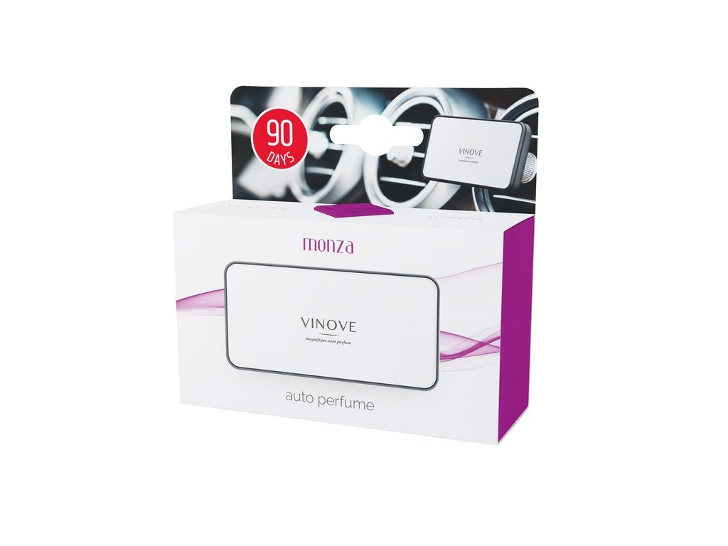 Vinove luchtverfrisser Original Monza een combinatie van ananas en perzik met een vers boeket bloemen. Met de clip horizontaal en verticaal te bevestigen in het ventilatierooster.