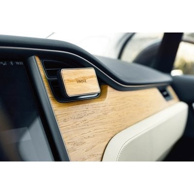 Vinove luchtverfrisser Prestige Wood Line Oslo met een geur van krachtige sandelhout en labdanum met een vleugje peper en wierrook. Met de clip horizontaal en verticaal te bevestigen in het ventilatierooster.