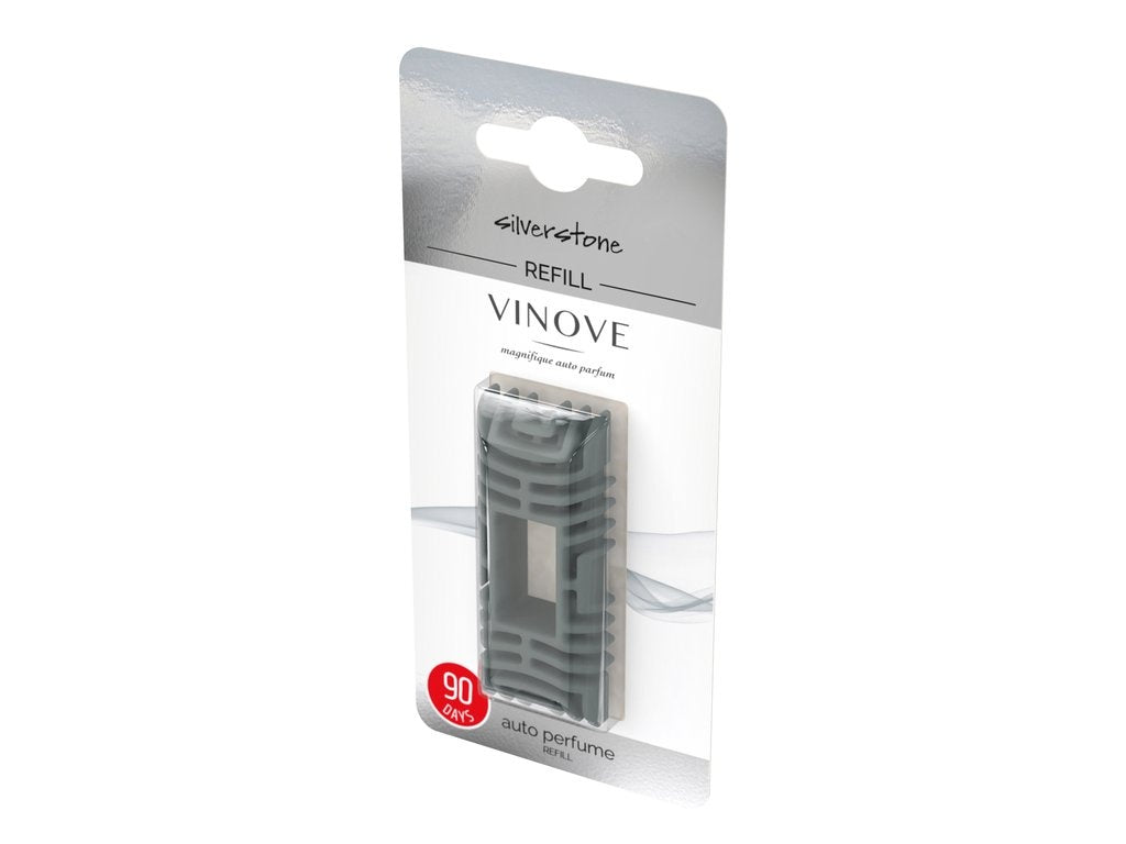 Navulling Vinove luchtverfrisser Silverstone met een verfijnde combinatie van geuren van citroen, lavendel en kruiden. Deze navulling past in alle Vinove Original luchtverfrissers en gaat tot 90 dagen mee.